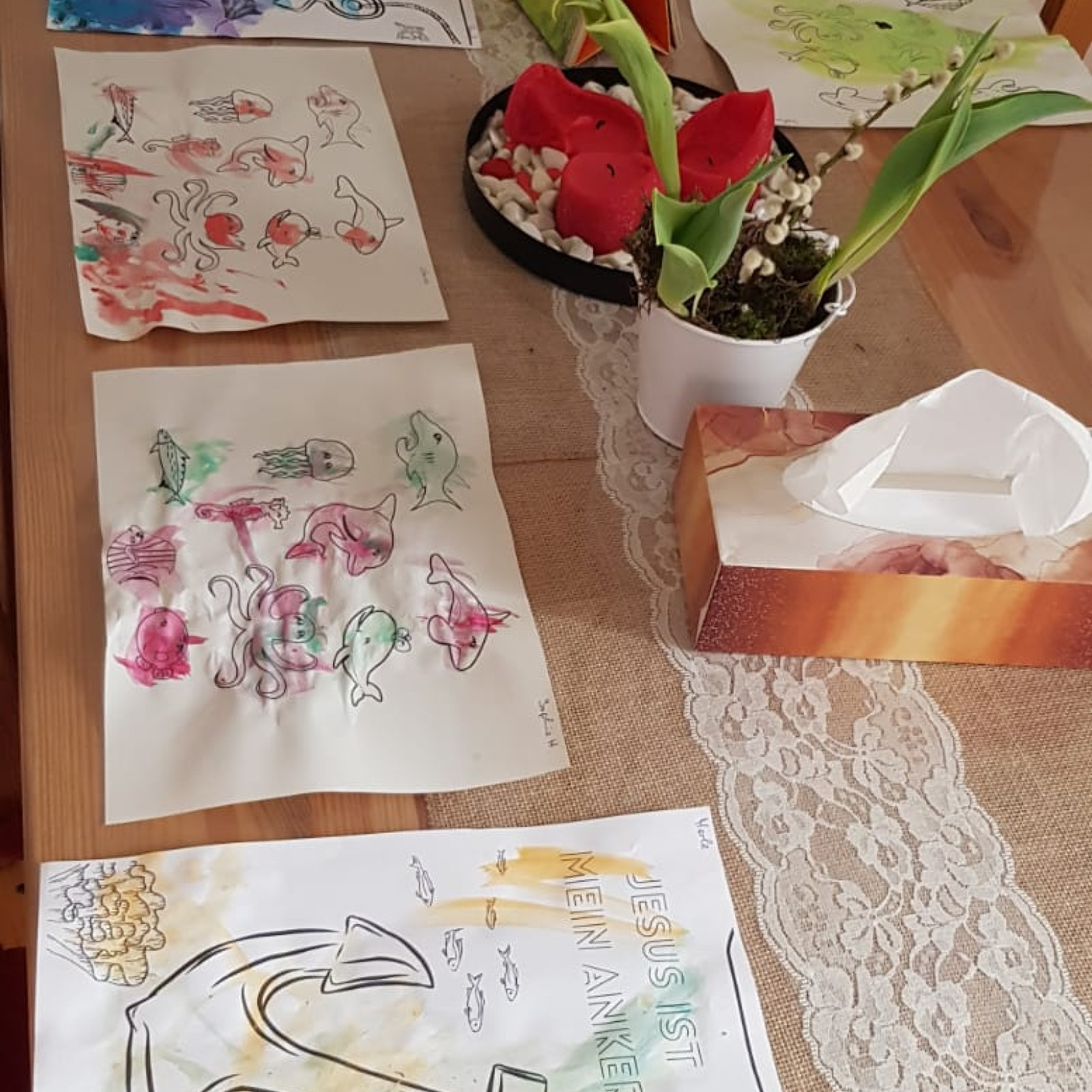 Hier wird geschmückt, gebastelt und gebacken.